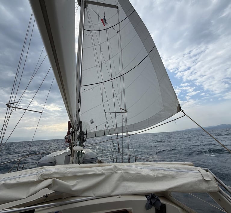 Once weâd danced our way past the fishing pots, we settled into a lovely sail towards CanetâenâRoussillonâwhich, for the record, is currently winning the award for âMost Difficult Marina Name to Pronounce Over the Radio.â Thankfully, they eventually understood me, and we were guided in to a prime spot right beside the capitainerie and the sanitaires. Pure luxury.