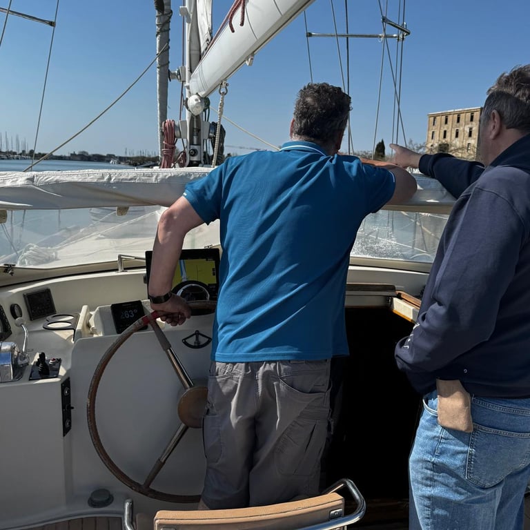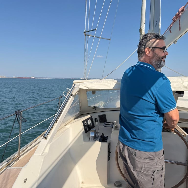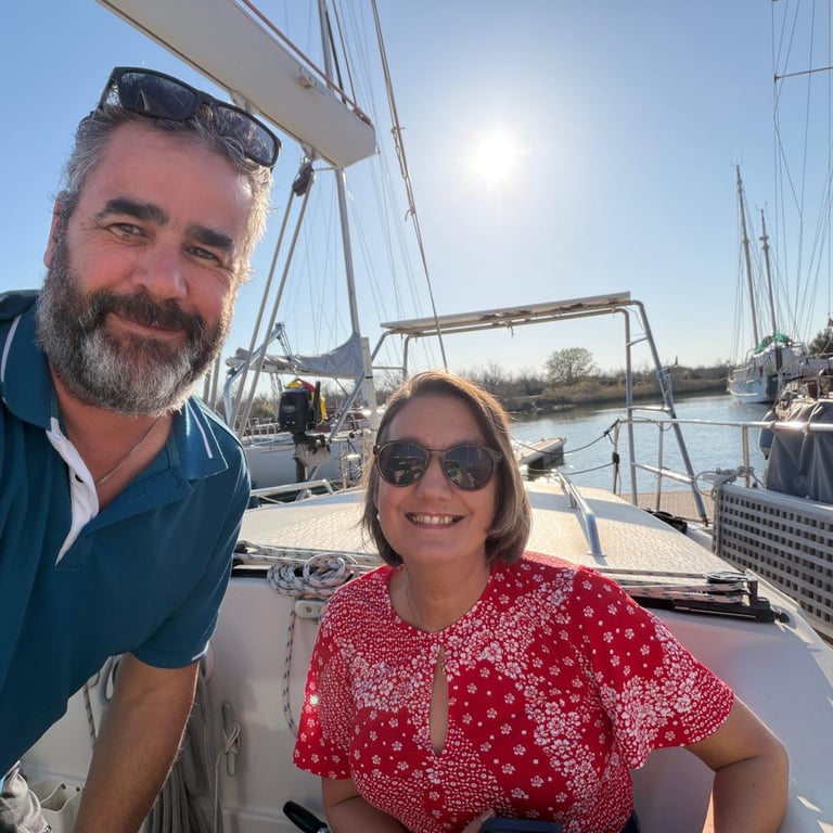 Tim, now thankfully on the mend, hasn’t slowed down for long. He’s been busy getting things shipshape: cleaning out the water tanks so we’re confident for washing up and showers (we never drank from the campervan tank either, so no change there). The lazarette has had a proper sort-out too—we’re making room for folding bikes ahead of returning the hire car in a few days.