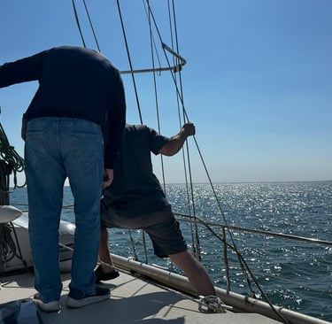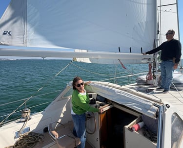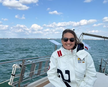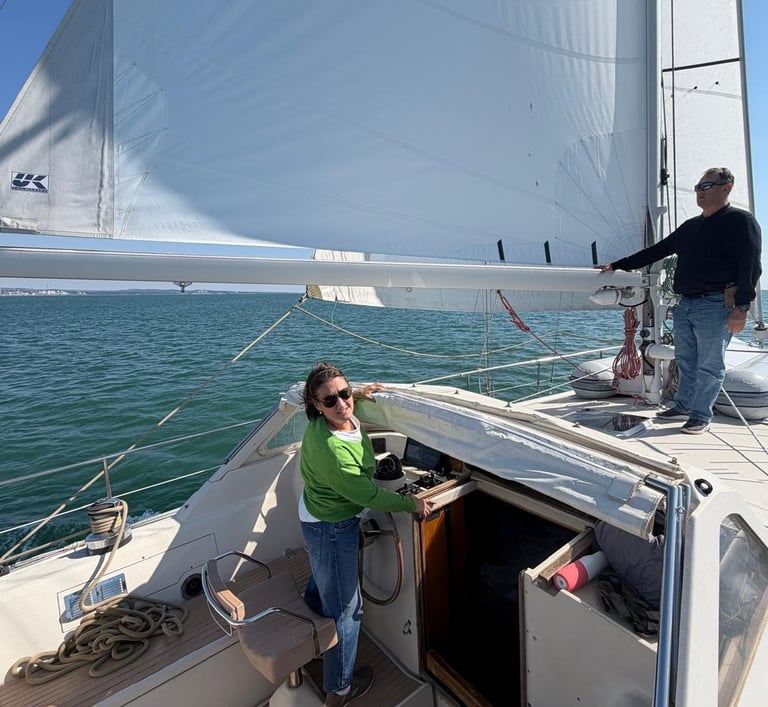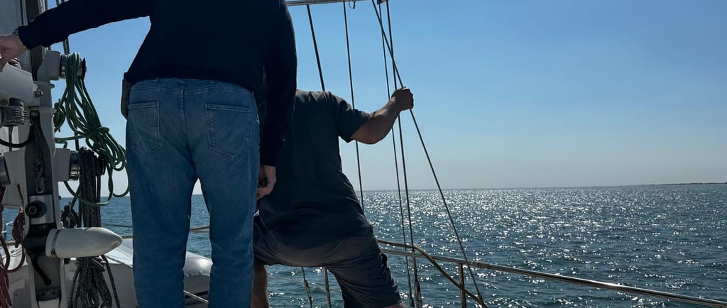 We’ve spent hours tacking up and down the bay, winching in, watching those telltales stream out horizontally (such a satisfying sight), and feeling Novera settle into a gentle, confident heel. There’s a rhythm to it—one we’re slowly finding.