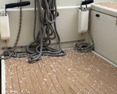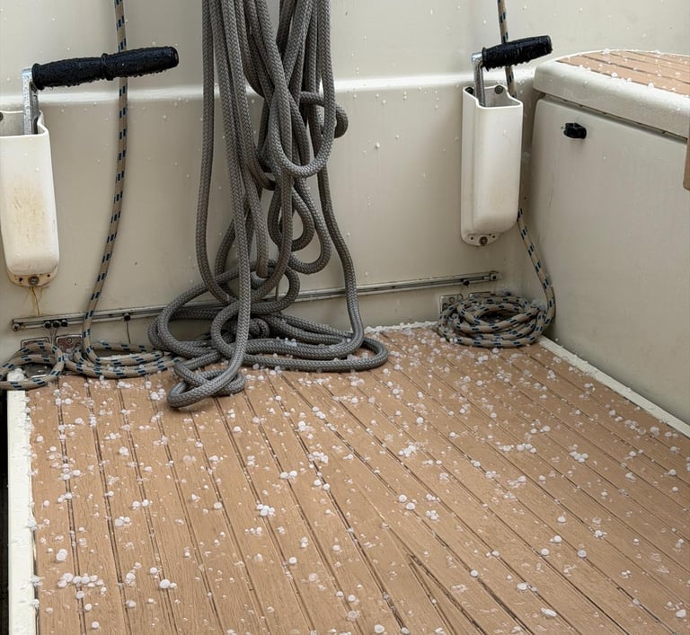 The weather, not to be left out, has kept things interesting. We’ve had lightning, hail, and some impressively heavy downpours. But thankfully all from the safety of the marina! Not easy for sailing, but perfect conditions for staying put on those days, sorting through lockers, cataloguing what we actually have onboard (and what cupboard or under-seat storage it’s in…), and sealing up a few small leaks. (Apparently all sailing boats are sinking some just faster than others 🤣 and ours is definitely a little slower now 🤣)